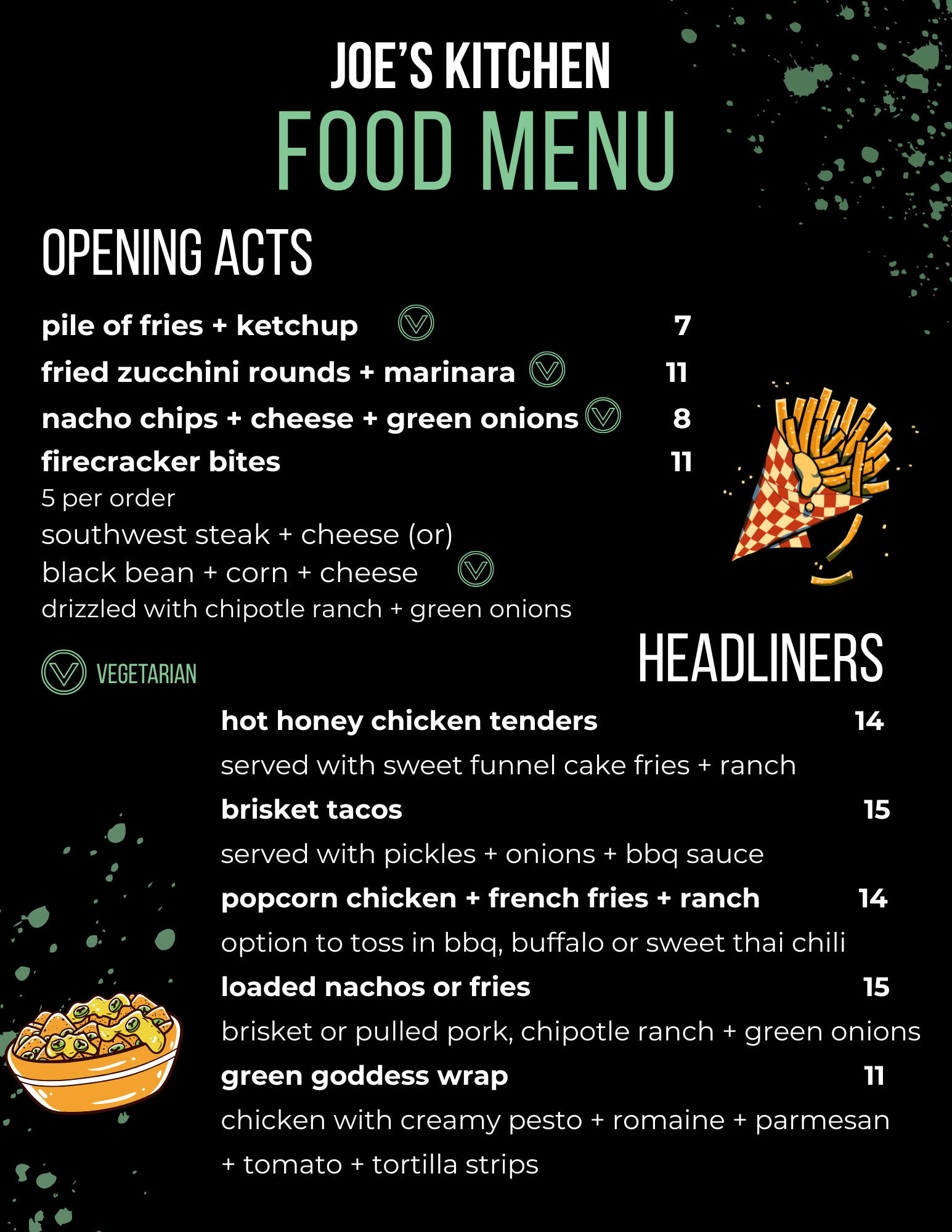 JOE'S KITCHEN Menus